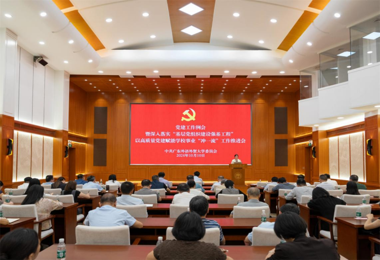 2019年10月,学校召开第四次党代会。大会总结了自第三次党代会以来广外发展的成就和经验,分析了国内外发展大势和高等教育面临的任务,提出了新时代学校的发展目标和今后五年学校重点实施的“六大卓越工程”,并强调以高水平党的建设引领国际化特色鲜明的高水平大学建设。提出今后五年学校要坚持以立德树人为根本,在人才培养、学科建设、科学研究、师资引育、社会服务、教育国际化上努力实现“六大新突破”。重点实施包括卓越人才培养工程、卓越学科引领工程、卓越师资引育工程、卓越开放合作工程、卓越文化建设工程、卓越治理体系工程等“六大卓越工程”,努力构建与国际化特色鲜明的高水平大学相适应的工作体系和发展格局。