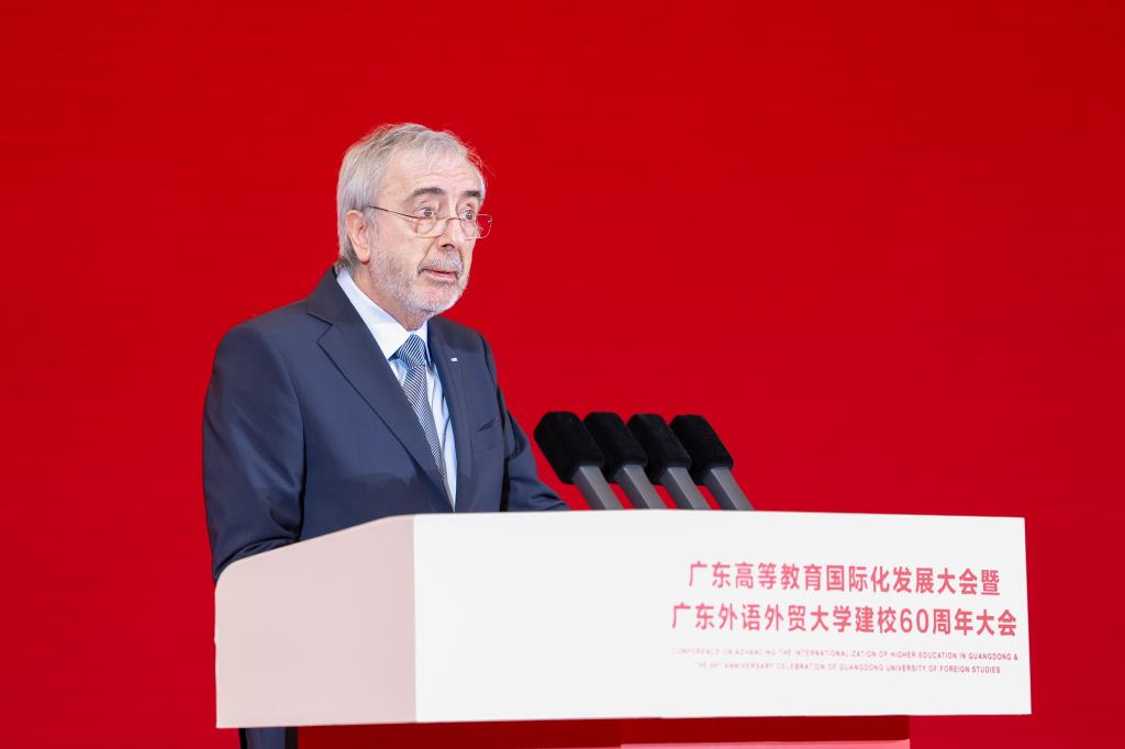 广东省政协副主席,民盟省委会主委王学成在致辞中表示,60年来,广外始终坚守“为党育人、为国育才”初心使命,扎根南粤、服务国家、联通世界,形成了鲜明的国际化办学特色,培养了大批高素质国际化人才。希望广外以建校60周年为契机,认真落实立德树人根本任务,为广东教育强省建设筑牢人才根基,为服务广东经济社会高质量发展作出更大贡献,为深入推进高等教育对外开放和文明交流互鉴发挥更大作用。