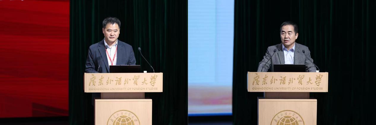 林敏洁主持(左)与陈多友做主旨报告(右)