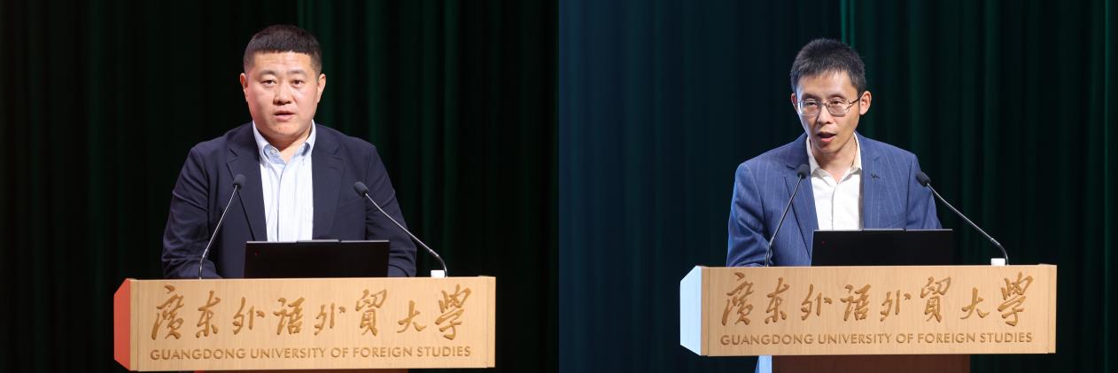 房国铮主持(左)与黎跃进做主旨报告(右)