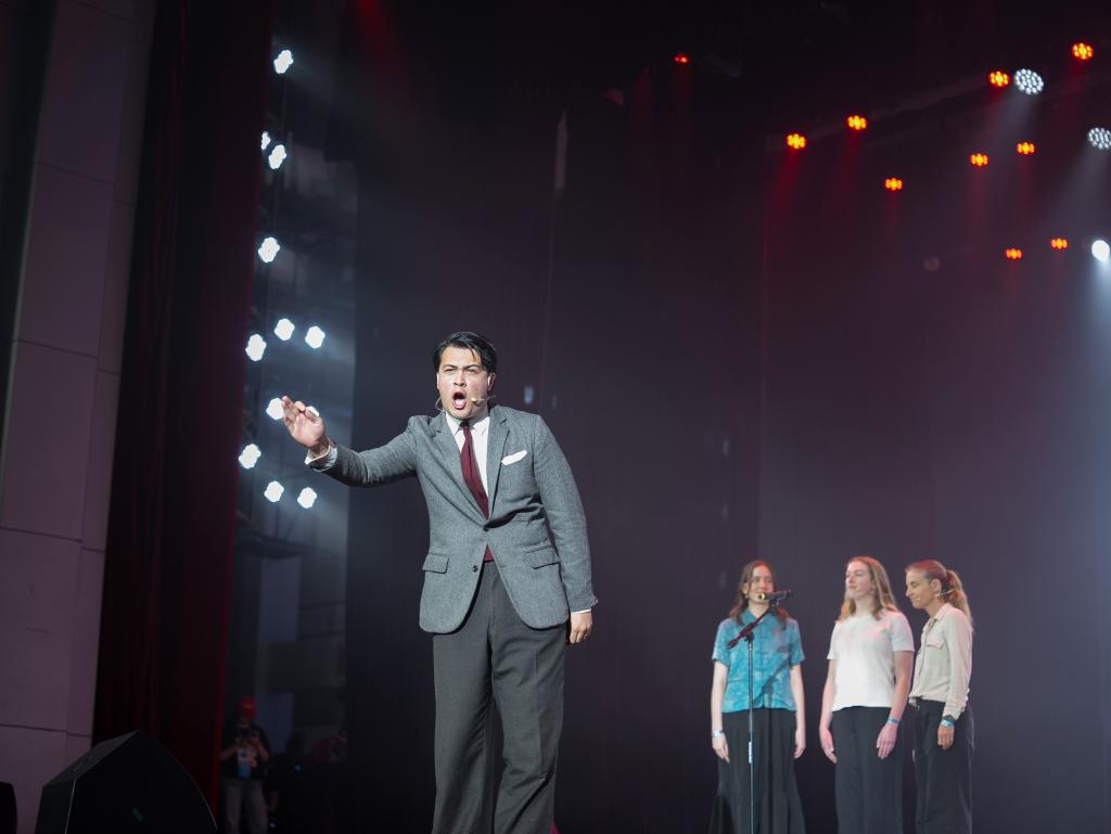 武术《广袤英豪立武魂》在铿锵呐喊中亮相,长枪如龙、拳风似虎,展现出中华武术的刚柔并济与力美交融。压轴节目《星光筑梦甲子新声》将晚会推向高潮。多国学子齐声献礼广外六十华诞,留学生丽莎以一曲《茉莉花》唱出对中国文化的热爱。最后,众人高举“从广外,向世界”的字牌,齐声祝福广外生日快乐。六十载薪火相传,“明德尚行、学贯中西”的广外精神在舞台上熠熠生辉,每一束光、每一个音符,都成为联接中外学子心灵的桥梁。