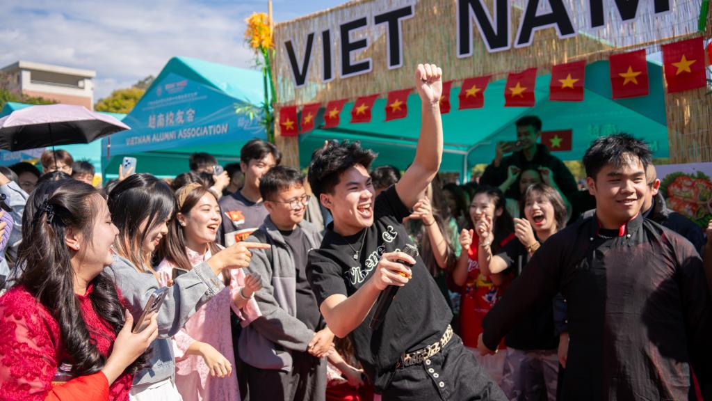 歌声同样打动人心。多国留学生组成的乐队带来《音乐之桥》,以旋律跨越语言,搭建起情感交融的文化桥梁。他们演绎的粤语金曲《海阔天空》引发全场大合唱,音符跃动间,文化在传递,友谊在升华。