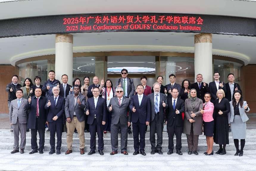 本网讯 近日,我校2025年孔子学院联席会在白云山校区行政楼国际会议厅成功举办。来自日本、俄罗斯、秘鲁、佛得角、埃及、葡萄牙等6所孔子学院合作大学的校领导、孔子学院中外方院长及代表齐聚广外,共贺广外建校六十周年,共商孔子学院发展大计。校长闫相斌、副校长刘建达、申明浩等校领导及各相关学院、职能部门负责人出席会议。会议由副校长申明浩主持。