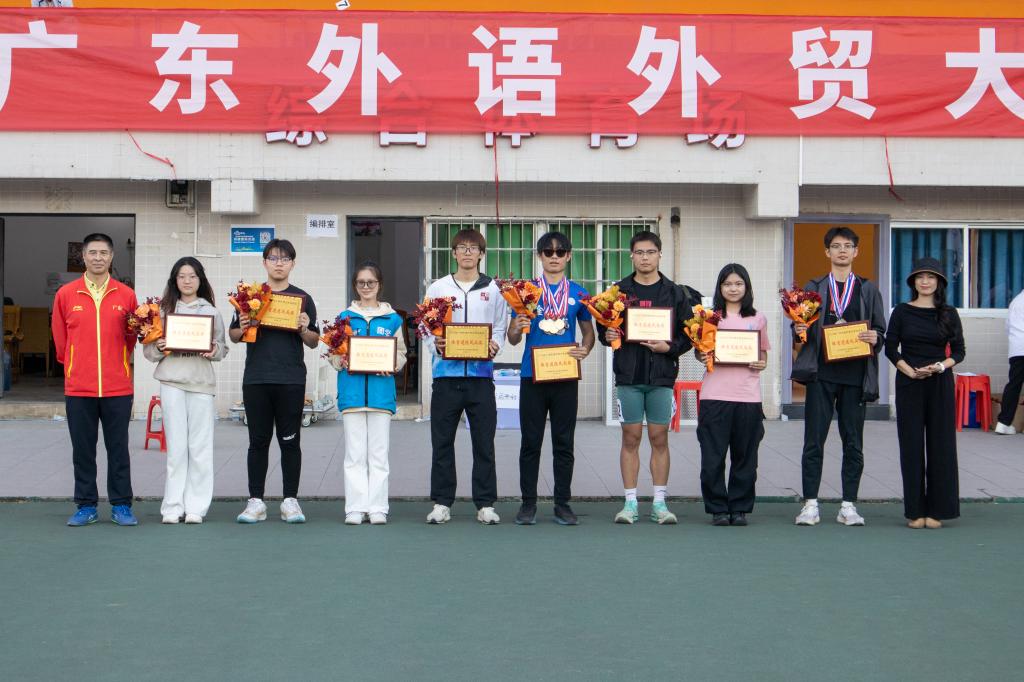 体育部党总支书记钟罗军、广外云山勤工校友会会长郭松为获奖队伍颁奖。