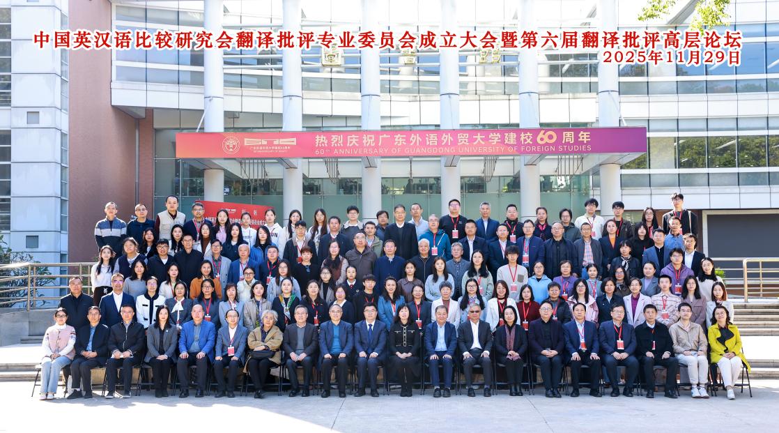 本网讯 中国英汉语比较研究会翻译批评专业委员会成立大会暨第六届翻译批评高层论坛于11月28日至11月30日在广东外语外贸大学(白云山校区)及韶关乳源隆重举行。本次会议由中国英汉语比较研究会翻译批评专业委员会主办,广东外语外贸大学英语语言文化学院承办,外语教学与研究出版社、上海外语教育出版社、译国译民翻译服务有限公司、广州数智经纬科技有限公司协办。