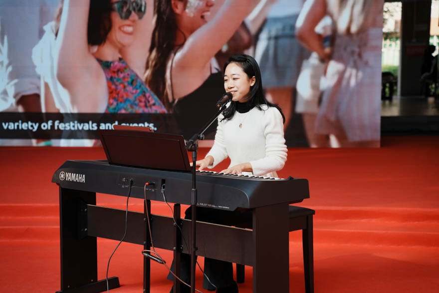 土耳其男女舞者身着华丽礼服,用绚丽浪漫的舞姿演绎民族风情,在旋转与步伐间,让观众沉浸式感受异域浪漫。来自澳大利亚的华裔卓悦带来钢琴弹唱,《Waltzing Matilda》《IStillCall AustraliaHome》两首曲目娓娓道来,不仅唱出游子对故土的眷恋,也传递出对不同文化包容共存的期许。“希望通过音乐搭建连接,让更多人感受文化交融的美好。”她在采访中说道。
