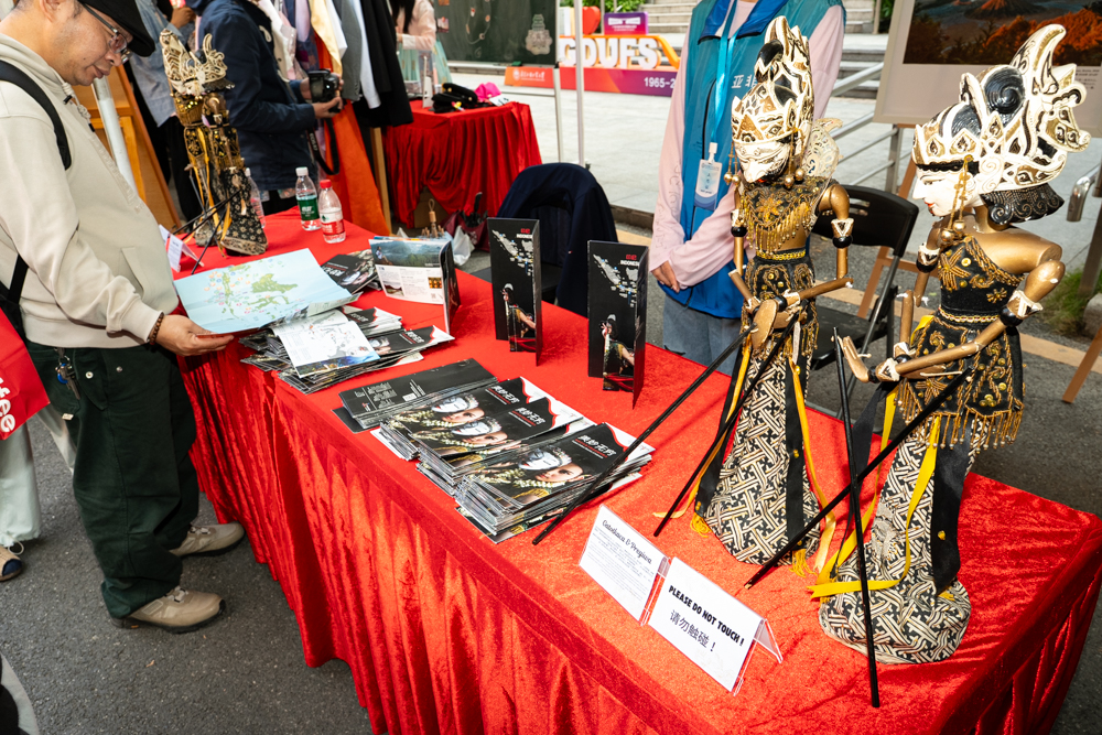 在印度尼西亚摊位前,炭香扑鼻的沙爹鸡肉串令人食指大动,什锦油炸小吃金黄酥脆、咸香适口,香料十足的爪哇炒饭与椰香四溢的斑斓糕为味蕾“加码”,洋溢着热带群岛的独特气息。