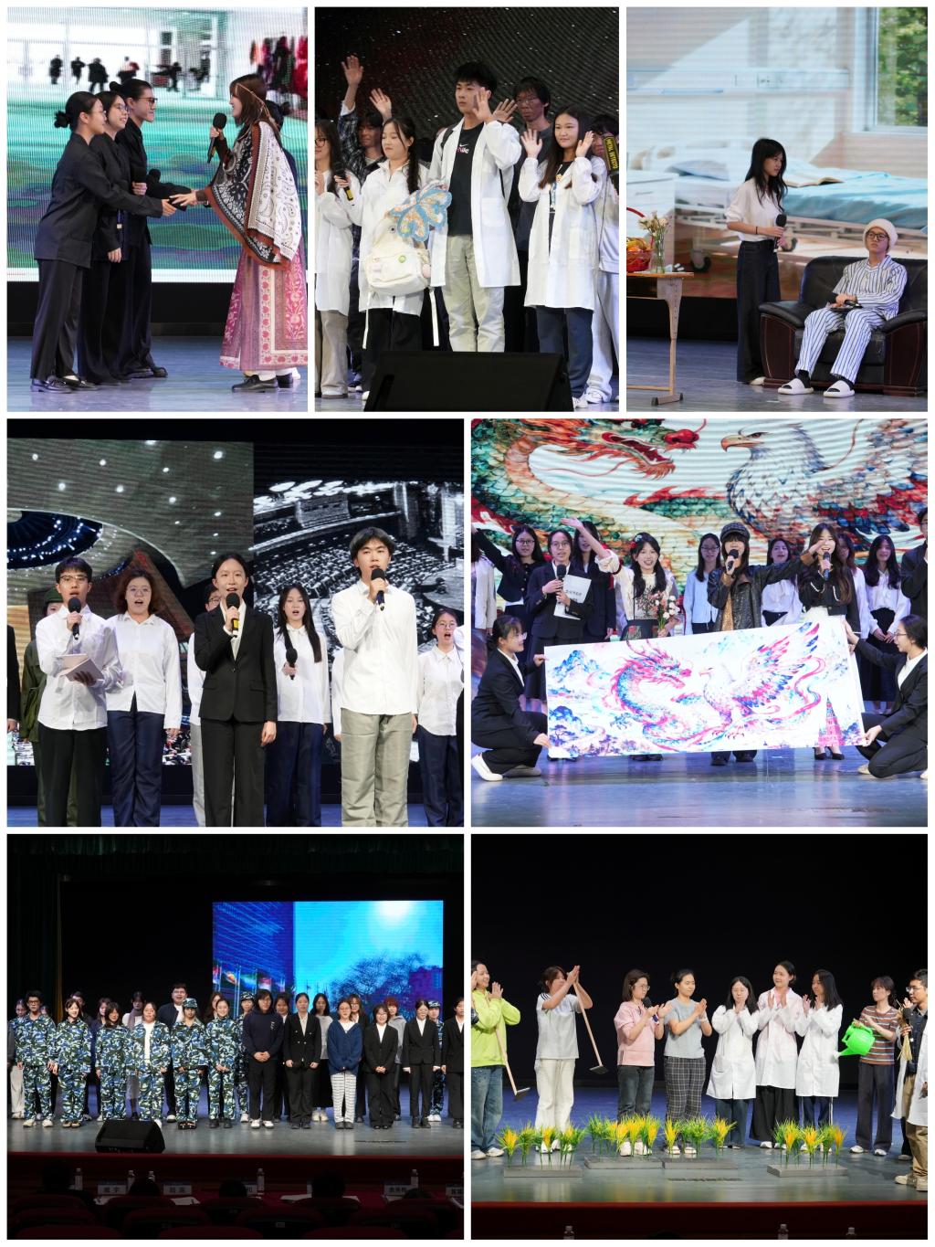 七支剧组围绕联合国的四大宗旨,重现联合国八十年风雨兼程中的关键时刻。从1971年联合国总部五星红旗升起的晨曦,到2001年波恩会议室内缔造和平的烛光;从乌干达稻浪间跃动的金色希望,到联合国教科文组织舞台上文明交融的华彩乐章;从黄华路油印机流转的煤油馨香,到日内瓦万国宫六语同传的科技光芒;再到全球抗疫中跨越疆界的生命防线,在历史与现实的共鸣中,在东方与西方的对话里,一幕幕精彩演绎跨越时空、直抵人心,区域国别学子用“红色演绎”串联起中国与世界各国携手共进的璀璨星河,展现青年与“红色之路”的使命共振。