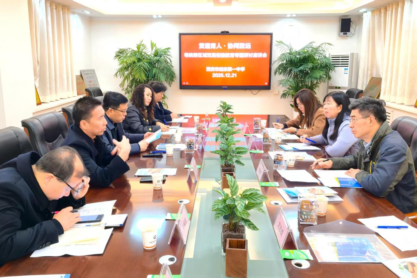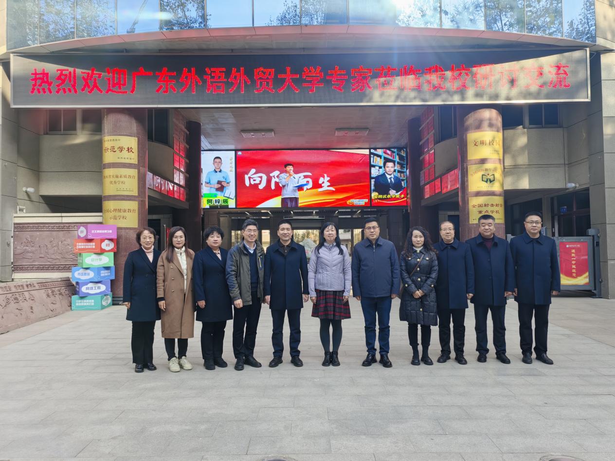 本网讯 为深化粤陕教育协作、探索高等教育与基础教育贯通式人才培养新路径,12月21日,广外党委副书记葛小月率金融学院党委书记徐昶斌、副书记张璇等一行,赴西安市远东第一中学(以下简称“远东一中”)开展“双高衔接”协同育人专题调研活动。西安市莲湖区教育局党委书记、局长杨建华,远东一中校长杨省及全体校级领导班子成员共同参与此次交流。