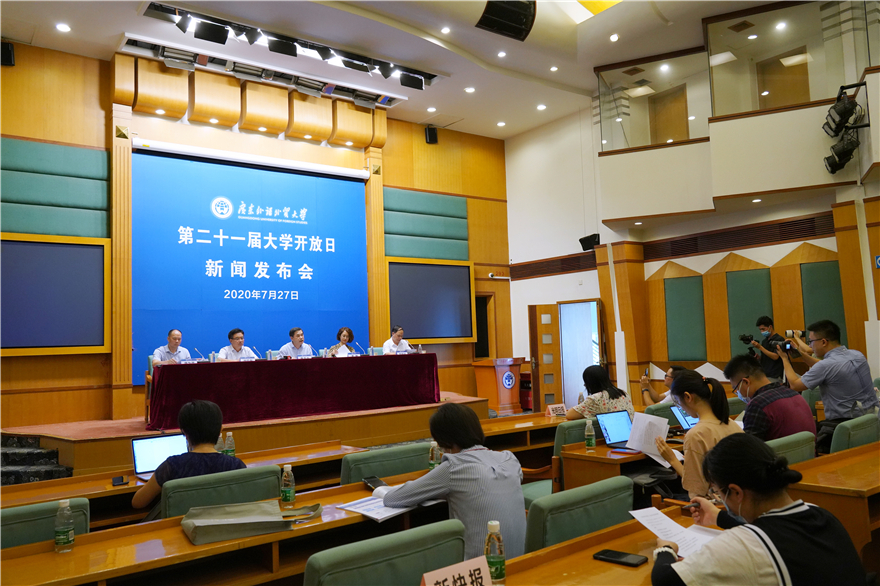 本网讯 今年我校新增国际组织与全球治理专业,开设法学(国际组织创新班)等系列创新班。这是我校副校长焦方太在7月27日举办的第21届大学开放日新闻发布会上公布的信息。新闻发布会吸引了中央、省内十余家主流媒体记者前来采访,我校招生办主任姜琳、学生处处长谢应东、学生就业指导中心主任康为茂、宣传部校报主编宾锐光出席发布会。