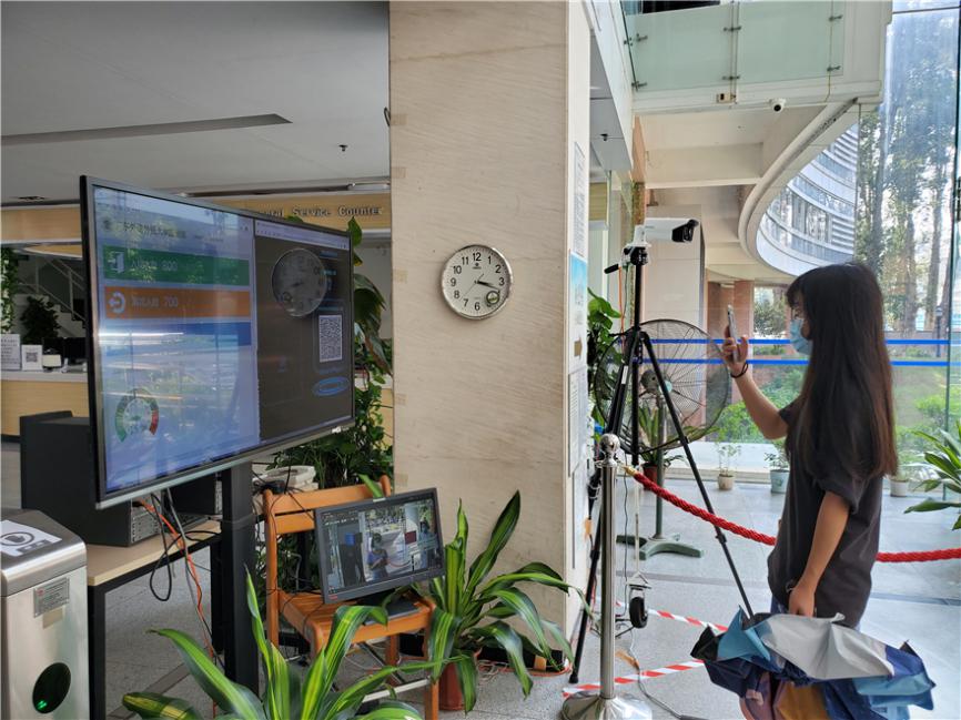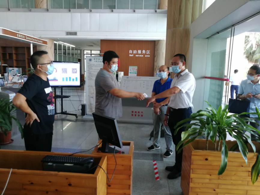 秋季学期图书馆将采用控制读者入馆流量的开放服务管理模式,读者入馆前需先行预约,预约成功方可入馆。在日常进馆场景模拟中,图书馆工作人员指引读者登录“广外图书馆”微信公众号进行预约,排队入馆,测温消毒,扫描正门入口处提供的“动态二维码”签到后,可刷卡入馆,隔位就坐。