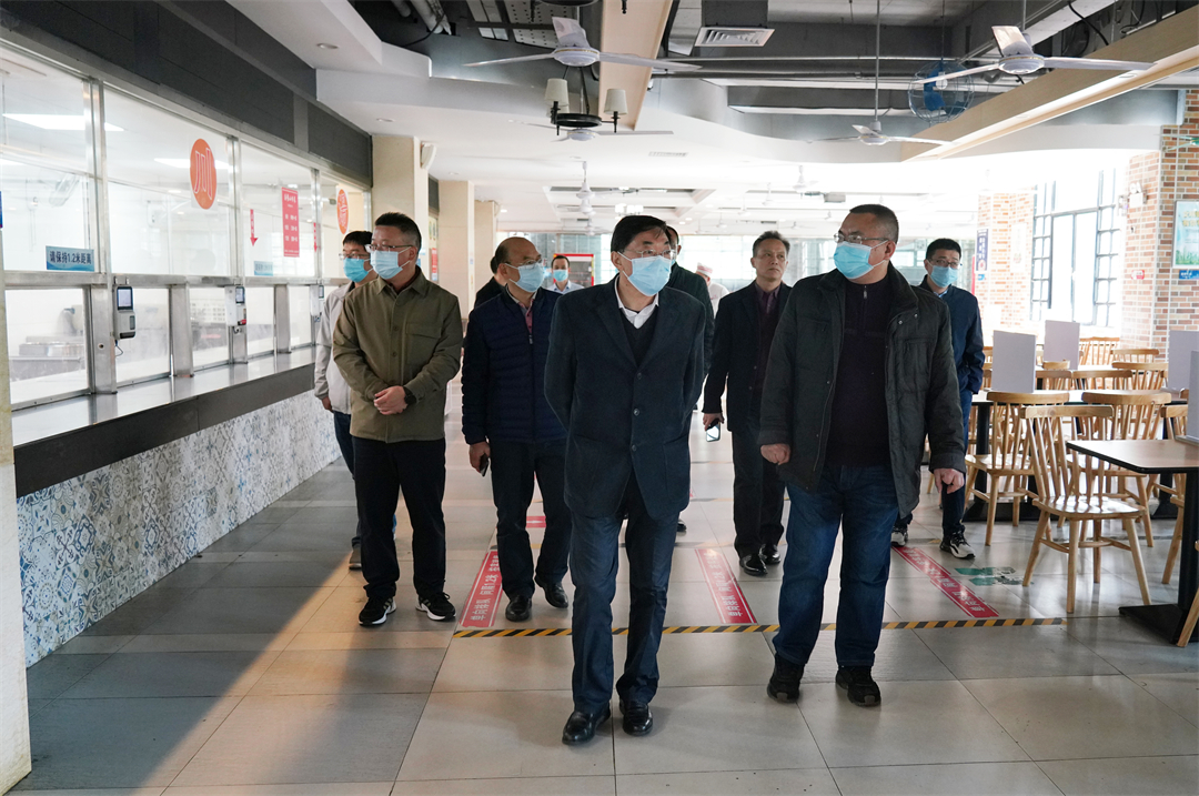 又讯 2月17日下午,广东省教育厅总督学徐仕敏带队到北校区飞行检查疫情防控工作,走访了校门出入口、门诊部、食堂和隔离观察区等,详细询问了我校师生返校筹备、防疫物质储备与应急预案等情况。我校党委副书记李云明,党办校办、保卫部(处)、后勤处等相关负责人参加检查。