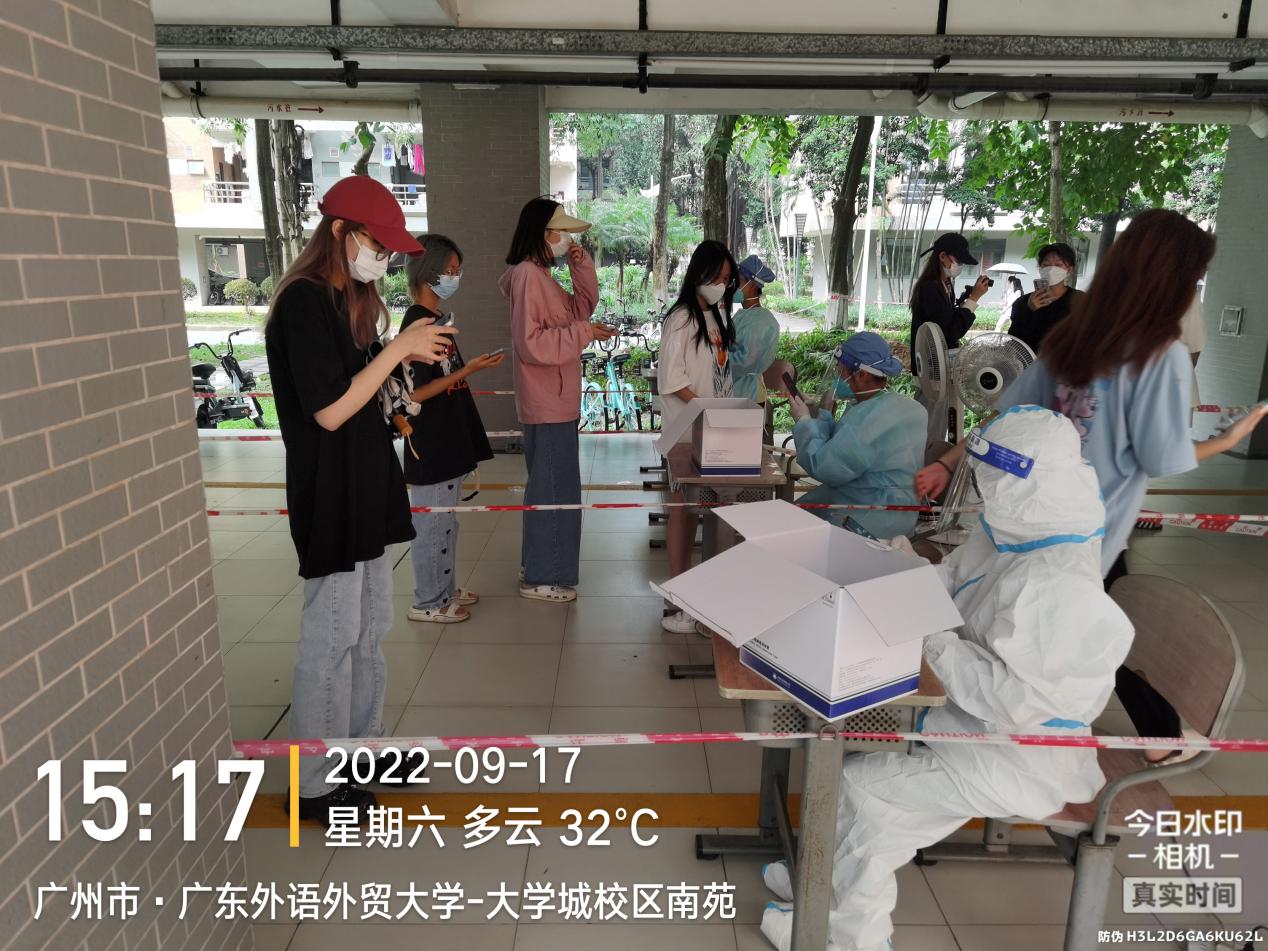 门诊部副主任杨春娜在16日当天,连续工作超过20个小时。记者联系上她时,她正在紧锣密鼓地安排下一步工作。据杨春娜介绍,门诊部接到疫情消息之后,按照学校的应急预案的流程程序进行各项工作。由于平时已经进行了多次应急演练,学校的应急响应非常迅速,门诊部负责联系疾控部门和街道,排查密接重点人群,开展核酸检测,同时也要统计医疗需求,并将其进行分类处置。政府派遣了医疗保障专班,门诊部和医疗保障专班一起处理医疗需求,两套班子共同进行24小时值班守护,为学生提供强有力的保护。“现在门诊部正在加紧部署核酸点位。在这个特殊时期,前线和核酸检测的志愿者都由教职员工担任。有的老师到核酸采样点做志愿者,一天下来全身衣服都已经湿透,广外人的担当精神让人感动。”杨春娜谈到。