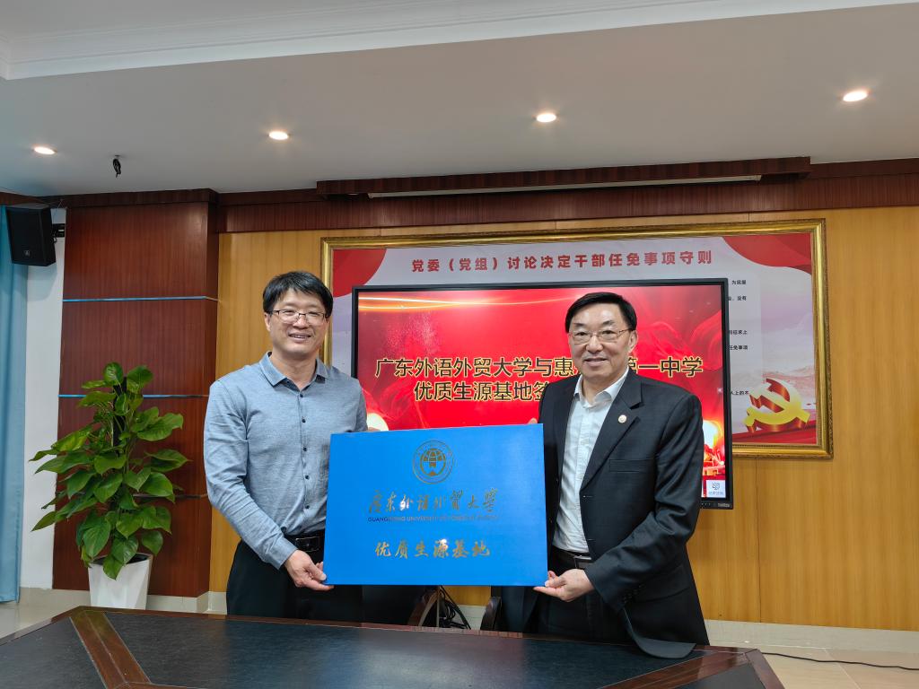 李云明一行与惠州市教育局、惠州市第一中学、惠州中学、惠州仲恺中学举行了座谈。李云明介绍了广外历史、学科优势、国际化特色以及办学成效,并与惠州市教育局副局长毛少琼及各中学负责人就校地协同育人机制、特色课程建设、师资培训、学生职业规划指导等方面进行深入交流,为高等教育资源嵌入中学、高校与中学建立长效合作机制打下坚实基础。